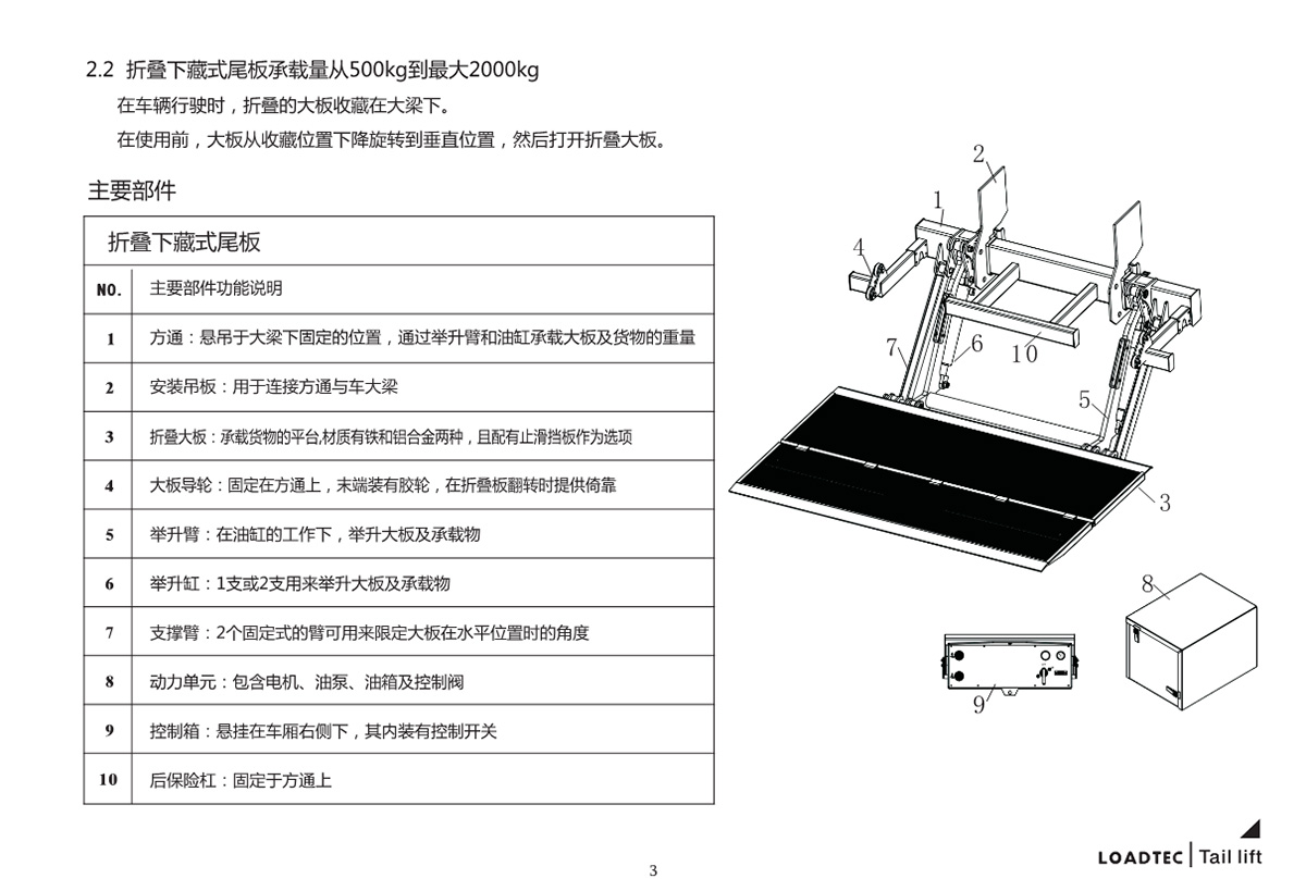 尾板 液壓爬梯系統(tǒng) 液壓動(dòng)力站 電控箱 三段式固定保險(xiǎn)杠 油缸 止滑裝置