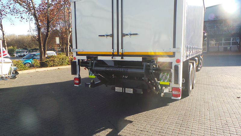 車輛行駛中,收藏于大梁底下,方便機(jī)動(dòng)叉車裝卸貨物,或者便于車箱直接與貨臺(tái)對(duì)接, 特別適用于停車空間有限,無(wú)法提供足夠的轉(zhuǎn)彎半徑的地方。適合中型車輛安裝