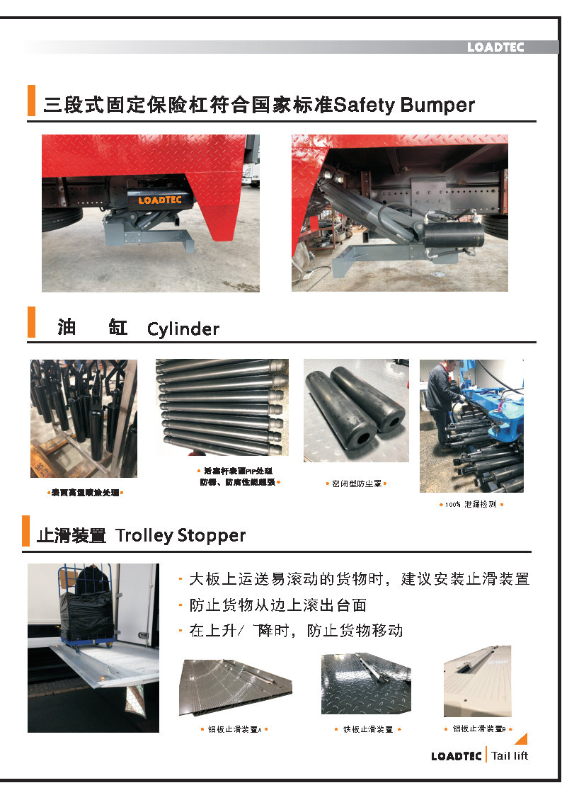 尾板 液壓爬梯系統(tǒng) 液壓動(dòng)力站 電控箱 三段式固定保險(xiǎn)杠 油缸 止滑裝置