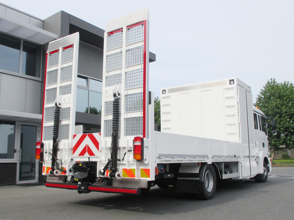 爬梯是一種安裝在平板掛車尾部,實(shí)現(xiàn)待運(yùn)車輛或裝備憑自身動(dòng)力上行至運(yùn)輸平臺(tái)或下行至地面的一種設(shè)備。目前已在工程機(jī)械運(yùn)輸、裝甲車輛運(yùn)輸?shù)阮I(lǐng)域得到應(yīng)用。液壓動(dòng)力的使用,實(shí)現(xiàn)了爬梯收啟或打開(kāi)自動(dòng)化。我們可按客人的需求定制液壓系統(tǒng)及其電控系統(tǒng)。